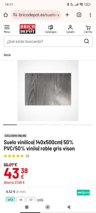 Suelo vinílico de alta calidad con un diseño imitación roble gris visón. - Medidas: 140x500cm. - Composición: 50% PVC / 50% vinilo. vendo 6 rollos suelo vinílico comprados y finalmente no instalados....precio de cada rollo 43 euros en brico depot... acepto la mitad si te llevas los 6
