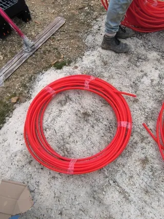 Rollo de tubo PEXA evo de la marca Sharkbite, diseñado para sistemas de suelo radiante. El tubo es de color rojo Tengo tres rollos: ** 90 metros ** 30 metros ** 15 metros El precio es a 1 euro el metro lineal si se quiere suelto. Si se compra todo 90 euros los tres rollos. - Material: PEXA evo - Color: Rojo - Marca: Sharkbite