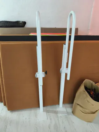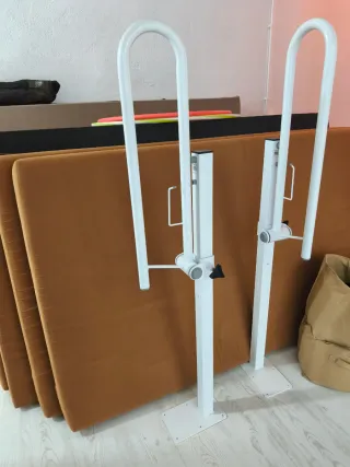 Barra de apoyo para baño, diseñada para personas con movilidad reducida. - Estructura de metal blanco. - Base estable para fijación al suelo. - Diseño curvo para facilitar el agarre. NOVES A ESTRENAR, RECOLLIR A GIRONA. ES PODEN POSAR ALÇADA ENTRE 65CM I 110CM, AGUANTEN 300KG PES. ES VENEN 2 UNITATS, EL PREU ÉS PER UNA UNITAT,50€ UNITAT !! PREU NO NEGOCIABLE. NOVES VALEN 119€ UNITAT, CADASCUNA ! Pq no són dels xinos són de ortopèdia i competeixen la normativa de seguretat (no com altres)