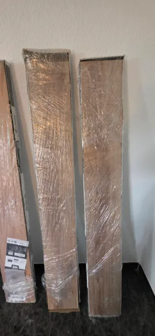 Gres porcelánico tipo parquet de alta calidad de la colección Stela Golden de Rosa Gres. Presenta un diseño inspirado en la madera. - 8 cajas aprox. en total con 6 piezas cada una. - 9/10 metros cuadrados en total - Cada baldosa mide 19,4 x 97,9 - Sobrante de una obra nueva - Escucho ofertas por una, varias o todas las cajas. - El precio en tienda es de 35€ por caja aprox.