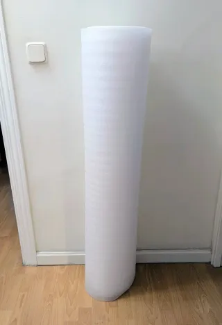 Rollo de base de espuma de polietileno, ideal para suelo laminado. Aislamiento térmico y sonoro. - Material: Espuma de polietileno. - Color: Blanco. - 20 metros cuadrados (1,20 de ancho x 16 metros) Por el tamaño no puedo enviar el producto, a recoger en Usera, Madrid.