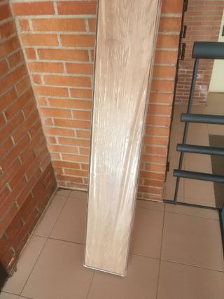 1 caja de suelo laminado de 1,89 metros con acabado imitación madera. Fácil de instalar y mantener. - Diseño de lamas de madera. - Tonos cálidos y naturales. - Tengo una caja de 8 lamas y otra con 3 lamas completas y otras dos lamas cortadas. - Ideal para un espacio pequeño.