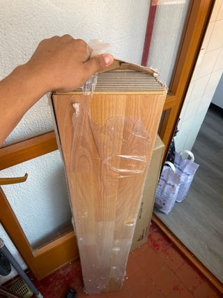 1 caja de suelo laminado de 1,89 metros con acabado imitación madera. Fácil de instalar y mantener. - Diseño de lamas de madera. - Tonos cálidos y naturales. - Tengo una caja de 8 lamas y otra con 3 lamas completas y otras dos lamas cortadas. - Ideal para un espacio pequeño.