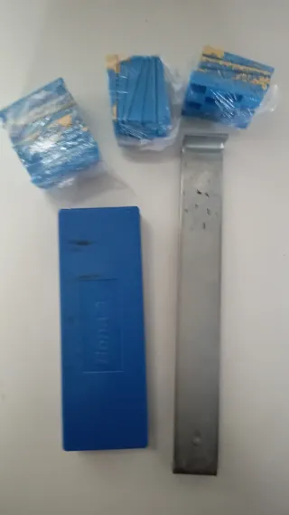 Kit completo para la instalación de tarimas flotantes.herramienta para suelo madera. Incluye: - 20 cuñas - Piezas de plástico azul para separación y nivelación. - Herramienta metálica para ajuste y colocación. Dexter, leroy merlin
