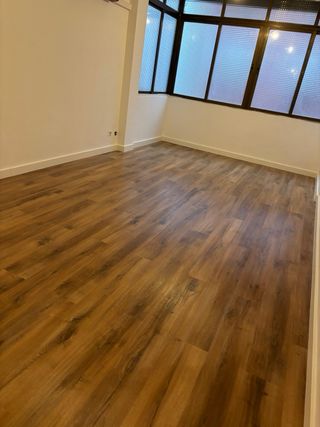 Suelo laminado en un tono gris claro, ideal para dar un toque moderno a cualquier estancia. - Acabado mate. - Diseño imitación madera. Alrededor de 50m2 Usado, y algunas llamas nuevas