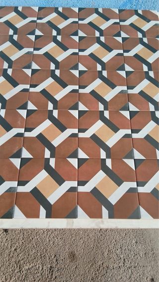 Baldosas de estilo hidráulico, ideales para suelos. Se venden 35 metros cuadrados. - Diseño con remolinos marrones y beige. - Acabado mate. Después de colocadas pulir y queda bellísima. Ideal para rústico y vintage. 1.5 eu pieza. 300eu todas. Y se las cargamos.