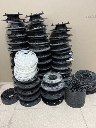 Leer anuncio Soporte para suelo técnico con base metálica y parte superior de plástico negro. - Base metálica con agujeros para fijación. - Columna ajustable. - Parte superior de plástico negro con anclajes. soporte pedestal seta plots suelo técnico suelo centro de datos, suelo oficina 100 unidades en total Si te llevas todos 700 Menos de 100 unidades a 9 unidad