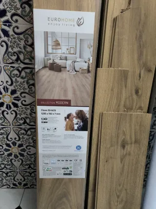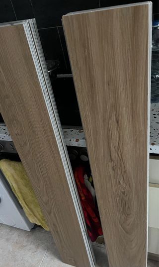 Suelo vinílico en formato de tarima, ideal para renovar espacios. Fácil de instalar y mantener las medidas son 22×122 viene con el aislamiento integrado hay 10 metros cuadrados ideal para una cocina o un baño posibilidad de llevarlo al sitio ...por alrededores de lerida - Diseño imitación madera. - Resistente al agua y al desgaste.