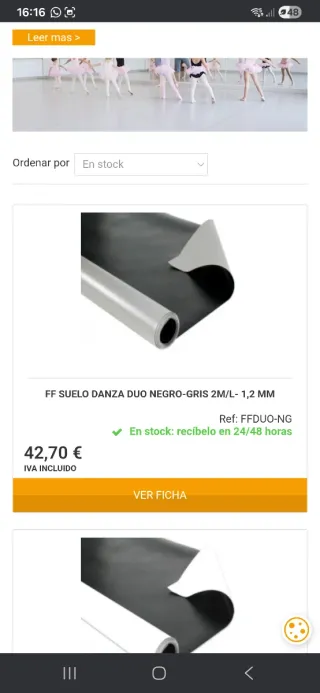 Suelo vinílico para danza, para la sala 20m