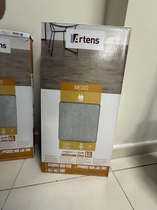 Suelo vinílico de la marca Artens en color gris, apto para interiores. Este suelo es adhesivo y de facil corte, lo que facilita su instalación. - Color: Gris - Tipo de instalación: Stick (autoadhesivo) - Uso: Interior VALOR NUEVO EN LEROY MERLIN 28,97€/CAJA Tengo 6 cajas y regalo una mas que esta un poco empezada.