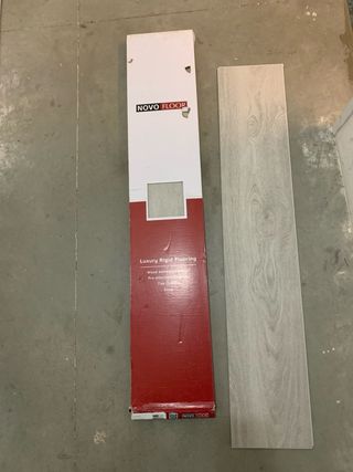 Suelo vinílico rígido SPC de la marca Novo Floor, con sistema de instalación clic. Base aislante ya incorporada en el suelo. Sobrante de instalación, ( 3 cajas enteras cada una de 2,224 m2 y lamas sueltas) unos 8-9m2 - Acabado imitación madera. - Textura en relieve. - Resistente al agua.