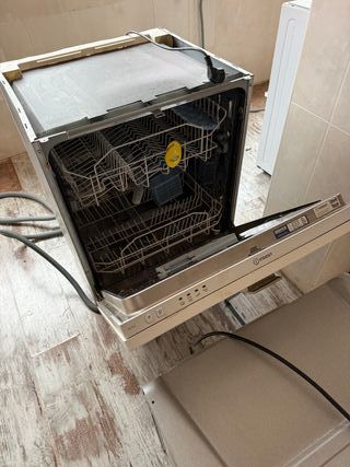 Muebles de cocina desmontados y bancada. Horno, microhondas, lavavajillas, lavadora. Suelo vinílico en dos tonos de roble. Se regala a quien quiera venir a recogerlo