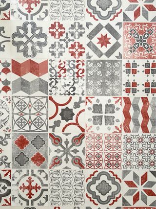 Suelo vinílico marca Tarkett. Estampado rajola hidràulica en tonos rojos y grises. Largo: 200cm Ancho: 74cm Grosor: 0,2cm