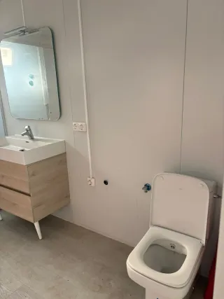 Caseta prefabricada a estrenar, lista para instalar. Cuenta con un espacio interior funcional y moderno. - Ducha completa. - Lavabo con mueble. - WC. - Radiador. - Puerta de acceso con cerradura - 2 Ventanas, 1 en la zona de ducha. - 1 Cristalera - Instalación electrica - Suelo vinílico de parquet - Medidas 345 *345 * 220. 12 metro cuadrados - Montada sobre superficie metalica