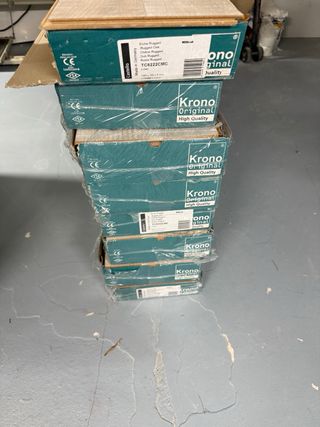 Se vende suelo laminado. El paquete incluye 10 piezas de parqué laminado. Las piezas están nuevas, en su embalaje original. Son de color madera natural y parecen resistentes. - Listo para instalar - 10 piezas incluidas - En perfecto estado Medidas 120cm x 19cm x 0'8cm