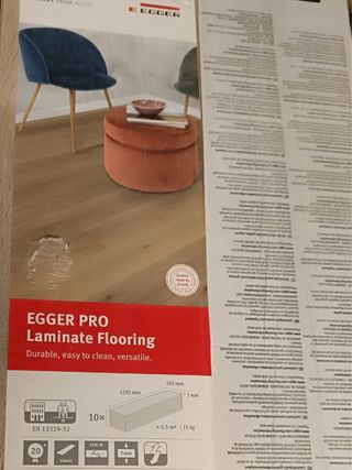 Suelo laminado EGGER PRO de alta calidad. Duradero, fácil de limpiar y versátil. Tengo 45m2 (Precio por paquete de 2.5 m²) - Dimensiones de la lama: 1292 mm x 193 mm. - Grosor: 7 mm. - Cobertura por paquete: 2.5 m². - Peso por paquete: 15 kg. - Clase de uso: 20. - Tipo de unión: CLIC it. - Estilo: Classic.