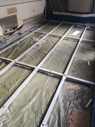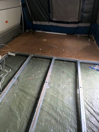 Base de acero inoxidable desmontable para el suelo de un avance. 6x3 m - Material: Acero inoxidable.