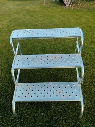 Se vende escalera de tres peldaños. De alto mide 60cm y de ancho 80cm. Se suele usar para caravana o móvil home.