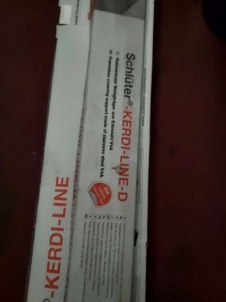Rejilla portadora Schluter Kerdi-Line D, nueva y en su caja original. Lista para instalar. A mitad de precio. -Opción de rematar con baldosa a juego del suelo o en metal - Longitud: 120 cm - Modelo: KLD E 120 - Se ve impecable.