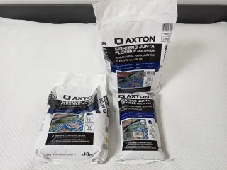 Lote de cemento para juntas Axton Gris Flexible Multiuso. Ideal para interiores y exteriores... Nuevos sin abrir, a mitad de precio (precio tienda 16€), dos bolsas de 5kgs y una de dos kgs de regalo. - Resistente a la intemperie y al agua. - Apto para piscinas y suelos de ducha. - Cubre aproximadamente 30m² de juntas. - Incluye dos bolsas de 5kg y una bolsa más pequeña de 2kgs de regalo.