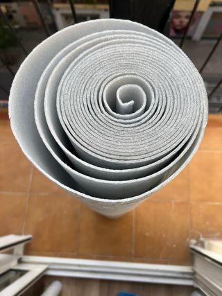 Rollo sobrante de material aislante para suelos. - Color plateado. - Textura rugosa. - Grosor 3mm - 1,15x6m