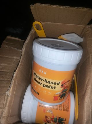 Pintura para suelos base agua, ideal para renovar tus espacios. - Fórmula base agua. - Incluye aplicador.