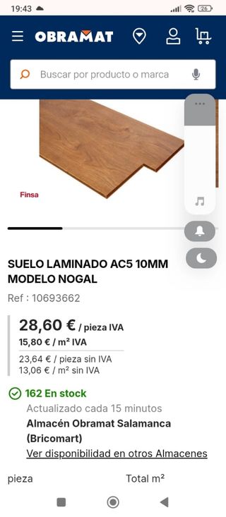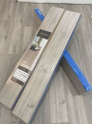 Suelo laminado de la marca LAMIKRON, de obramat, en su caja y envalado .. sobrante de una reforma. Son 17 m2