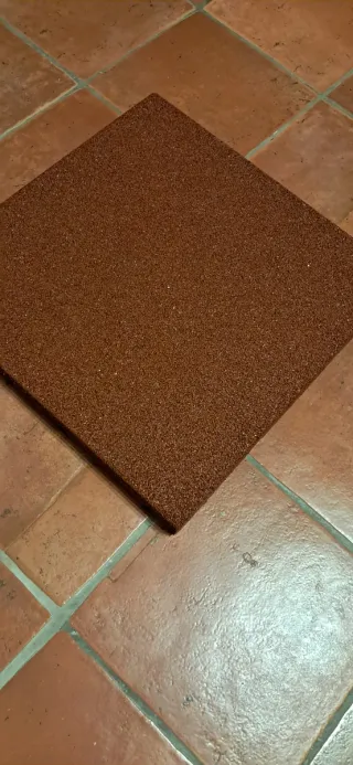 Loseta de caucho de color marrón, ideal para suelos. Unos 5 metros cuadrados 50×50 cm 5 cm de grosor 10 euros por loseta Negociable adquiriendo todas - Material: Caucho. - Color: Marrón.