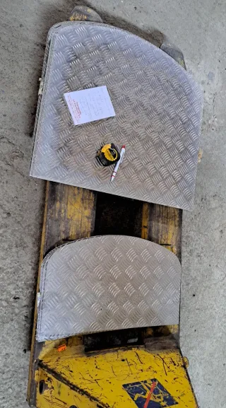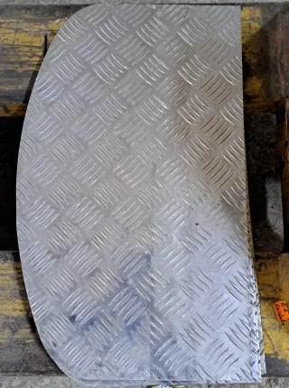 Pieza de chapa de aluminio con relieve antideslizante. Chapa damero, palillero. Material ligero, resistente y duradero. Resistente a la corrosión. Se utiliza para suelos, rampas, escaleras, revestimientos y decoración industrial. Caravanas. Medidas: 50 ancho x 30 fondo, alto. Disponibles 8 unidades. Precio por unidad. - Material: Aluminio. - Forma: Curva.