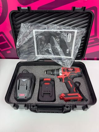 Taladro inalámbrico Parkside de 18V, ideal para trabajos en casa o profesionales. Incluye su cargador. - Color rojo y negro. - Batería de 1.5A PRECIO NEGOCIABLE.