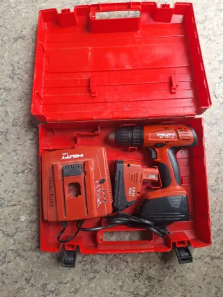Taladro atornillador Hilti SF 2H-A en su maletín. - Incluye taladro, batería Hilti G 4/12-50 y cargador. -modo percutor - Maletín rojo para transporte y almacenamiento. Funciona perfectamente Recogida local preferentemente
