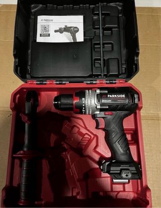 Maletín de transporte de la marca Parkside, con asa roja. Taladro atornilladora nueva a estrenar No lleva batería Entrega en persona no ago envios