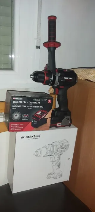 Taladro percutor Parkside Performance de 20V, ideal para trabajos de bricolaje y profesionales. - Incluye taladro percutor. - Batería de 20V 2Ah. - Cargador rápido de 2.4A. Nuevo a estrenar Con su maletín De cartón No mareantes Precio no negociable
