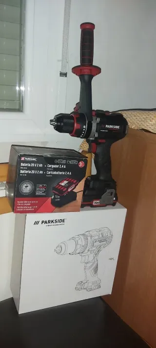 Vendo taladro Parkside de 20V en perfecto estado, casi nuevo. Incluye una batería de 20 V 2 Ah, cargador de 2.4 A, foco de trabajo LED Parkside y juego de brocas. - Taladro inalámbrico Parkside. - Batería de 20V 2Ah. - Cargador de 2.4A. - Foco de trabajo LED. - Juego de brocas. No negociable Si no le interesa pase No mareantes