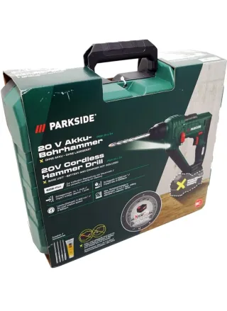 Taladro percutor Parkside de 20V, ideal para trabajos de bricolaje y construcción. Funciona con batería recargable. Biene con batería de litio de 20V 2AH y su cargador rápido de 2.4AH Nuevo a estrenar No mareantes - Modelo: Percutor Performance. - Voltaje: 20V. - Tipo de alimentación: Batería recargable.