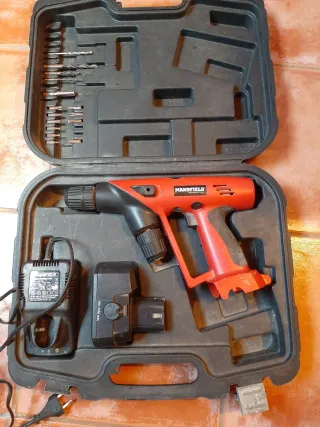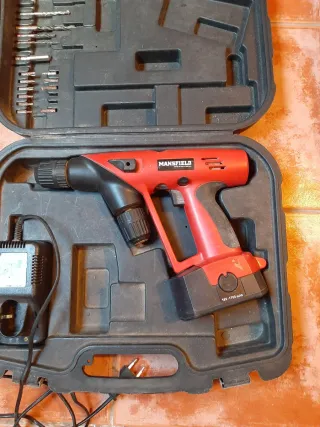 Taladro atornillador Masfield en su maletín original, - Incluye taladro atornillador. - Cargador de batería. - Batería. - Maletín de transporte. - Juego de brocas y puntas. llevava tiempo sin usarlo y no me va creo q es problema de bateria NO VA lo embio por impost