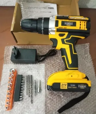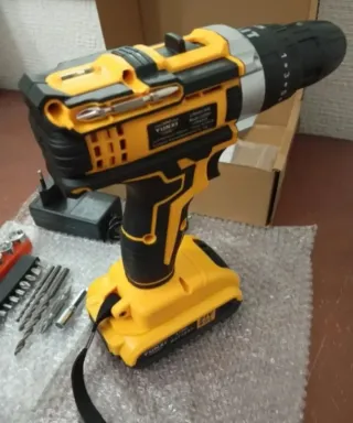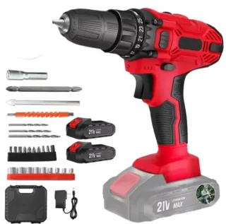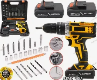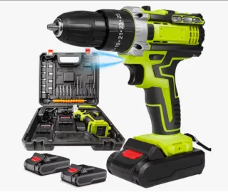 Taladro atornillador inalambrico con accesorios y baterías recargables 21V 1500mAh. Par de torsion de 45N.m con 25+1 ajustes del par. Función taladro y atornillador con giro en 2 direcciones. Mandril de 3 mandíbulas sin llave y luz led. -Taladro atornillador inalámbrico. -2 Baterías recargables 21V 1500mAh. -Cargador. -Juego de brocas de 3 brocas. -Juego de puntas planas y estrella. -Juego de vasos. -Extensión flexible. -Maletín de transporte. 📝Para otras cantidades contactar.