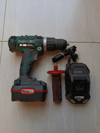 Taladro atornillador Parkside de 20V con batería y cargador. - Incluye taladro atornillador. - Batería Parkside 20V 4.5Ah. - Cargador Parkside. - Empuñadura auxiliar. - Maletín no original