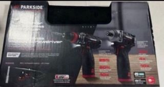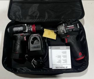 Set de taladro atornillador + atornillador de impacto Parkside 12V Pertormance - Incluye dos baterías recargables con cargador. - Motor Brushless. - Tecnología X-Change.