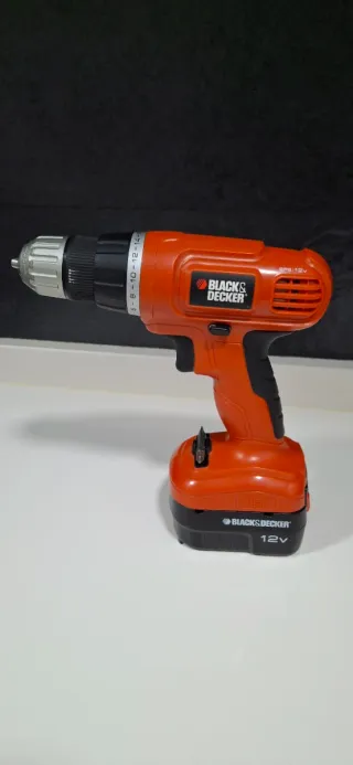 Taladro atornillador inalámbrico de la marca Black & Decker. - Color naranja y negro. - Voltaje de 12V. - Incluye broca.