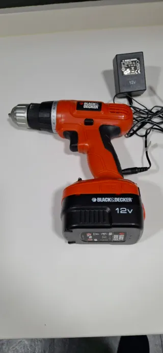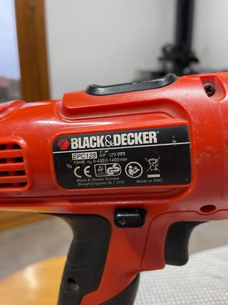 Taladro y atornillador de la marca Black & Decker. - Modelo EPC12. - Voltaje de 12V. - Velocidad de 0-700 rpm. - Portabrocas de 10mm.
