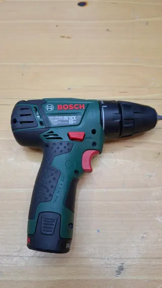 Taladro atornillador Bosch PSR 1080 LI en color verde y negro. - Diseño ergonómico para un agarre cómodo. - Portabrocas de sujeción rápida. - Indicador de carga de batería. Esta en perfectas condiciones y muy poco uso
