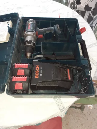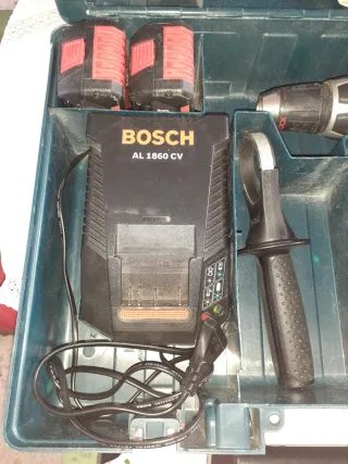 Se vende taladro atornillador Bosch profesional, junto con su cargador y dos baterías. - Taladro atornillador Bosch - Cargador Bosch AL 1860 CV - Dos baterías Bosch El taladro funciona mal necesita arreglo .Cargador ,baterías y caja en perfecto estado ,puede vender por separado