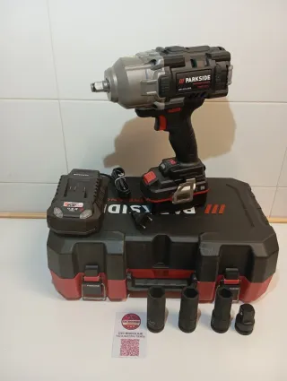 Llave de impacto inalámbrica Parkside con batería de 4 amperios y cargador rápido de 4.5 amperios. - Incluye maletín de transporte. - Juego de vasos. - Batería de 20V 4.0Ah. tags: Lidl, Bosch, Maquita, Dewalt, Stayer, Inverter, Hilti, Worx, Metabo, Einhell, carpintero, carpintería, batería, pintór, pintura, reforma, obra, metal, percusión, radial, amoladora, sierra caladora circular laser, compresor, llave, atornillador, atornilladora, soldar, soldadura, aparato, pistola, grapadora, lijadora herramienta compresor, ingletadora, impacto, fresadora, broca, aspiradora, taladro martillo,bricolaje,manualidades,lienzos