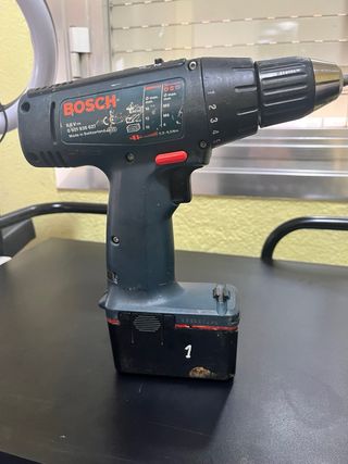 Taladro atornillador Bosch modelo GSR 9,6 VES-2. Funciona bien y tiene buen aspecto. - Incluye cargador original; una batería completamente nueva genérica 4.8 Ah y otra a reparar 2 Ah - Voltaje: 9,6V. - No percutor solo atornillador. - Velocidad: 0-350 / 0-1000 min-1. - Con su caja original, aunque no tiene seguros.