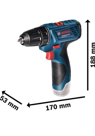 Taladro atornillador a batería Bosch Professional del sistema 12V. - Incluye cargador. - Incluye una batería de 12V 2.0 Ah Li-Ion. - Se entrega en su bolsa de transporte.