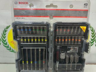 Juego de Puntas y Destornilladores Bosch de 43 Piezas, Nuevo!! Set Completo (43 piezas): Incluye una amplia variedad de puntas de atornillar de distintas longitudes y tipos (planas, Phillips, Pozidriv, Torx, hexagonales, etc.), y accesorios adicionales para cubrir casi cualquier tarea. Organización Impecable: Viene en un estuche robusto y práctico para mantener todas las piezas organizadas, protegidas y fáciles de transportar. Versatilidad: Ideal para usar con taladros, atornilladores de impacto o destornilladores manuales. Nuevo y Sellado: El set se encuentra completamente nuevo en su embalaje original.