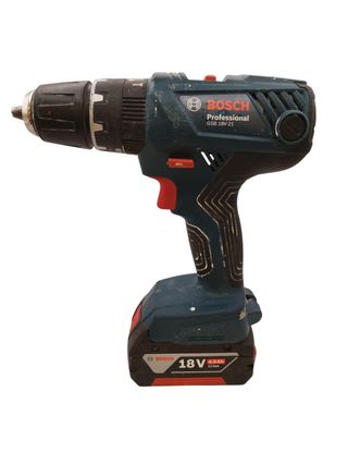 - Bosch Professional 18V System GSB 18V-21 - Taladro percutor a batería (55 Nm, 1800 rpm, sin batería) - Modelo estándar con escobillas de carbón sustituibles y engranaje totalmente metálico para taladrar, percutir y atornillar - Uso flexible gracias al mandril de 13 mm y a la luz LED para iluminar áreas de trabajo oscuras Sin batería, sólo el taladro Se vende con instrucciones Sólo entrega en mano
