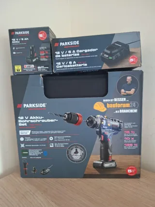 Taladro atornillador Parkside 12V con tecnología Performance -par de apriete 80Nm - Incluye batería de 2.5 Ah y cargador rápido de 6 A. - Maletín de transporte. - Indicador de carga de batería. - Luz LED de trabajo. -Motor Brushless -3 velocidades