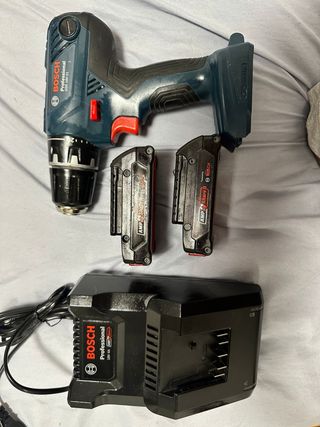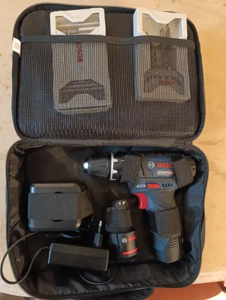 Se venden taladro percutor y taladro atornillador de la marca Bosch. - Taladro percutor con mango auxiliar. - Taladro atornillador con portabrocas. - Batería de 18V. - Cargador de batería.